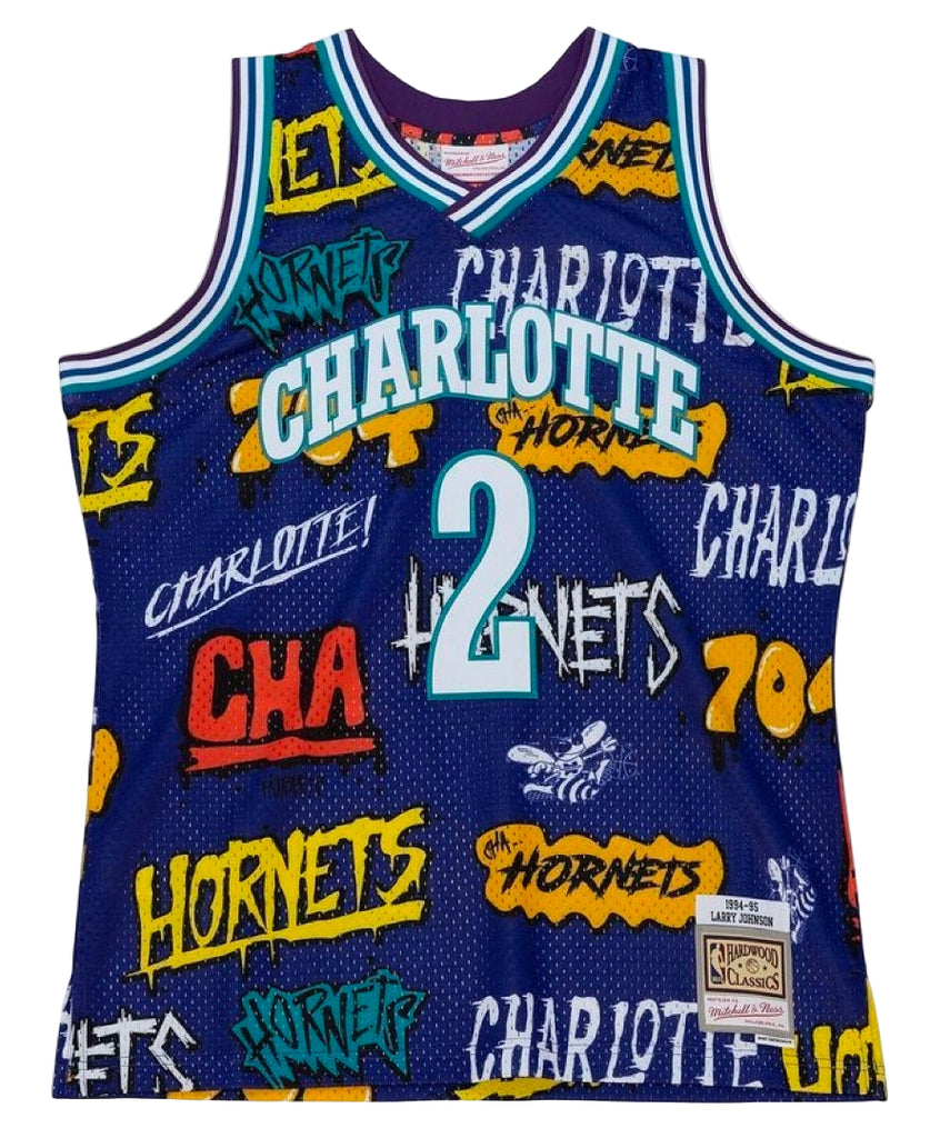 Mitchell & Ness Charolette Hornets Larry Johnson 1994 Slap Sticker Swingman Jersey