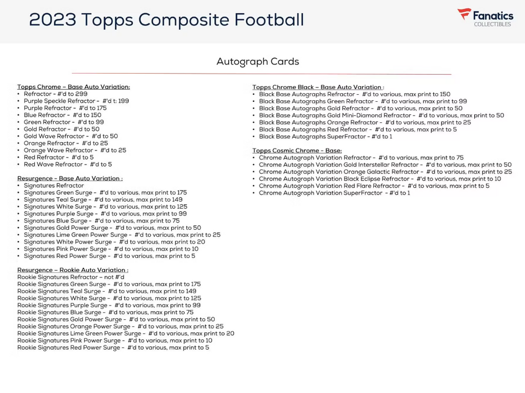 - Chrome Autograph Variation Refractor #'d to various, max print to 75