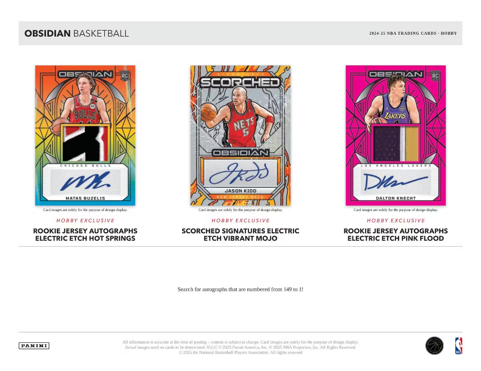 Collectors should look for autographs from sets such as Rookie Jersey Autographs, Rookie Jersey Ink, Matrix Material Autos, Magmatic Signatures, Galaxy Ink, Twilight Signatures, Rookie Eruption Autographs, Volcanic Signatures, and Scorched Signatures, which is new this year!