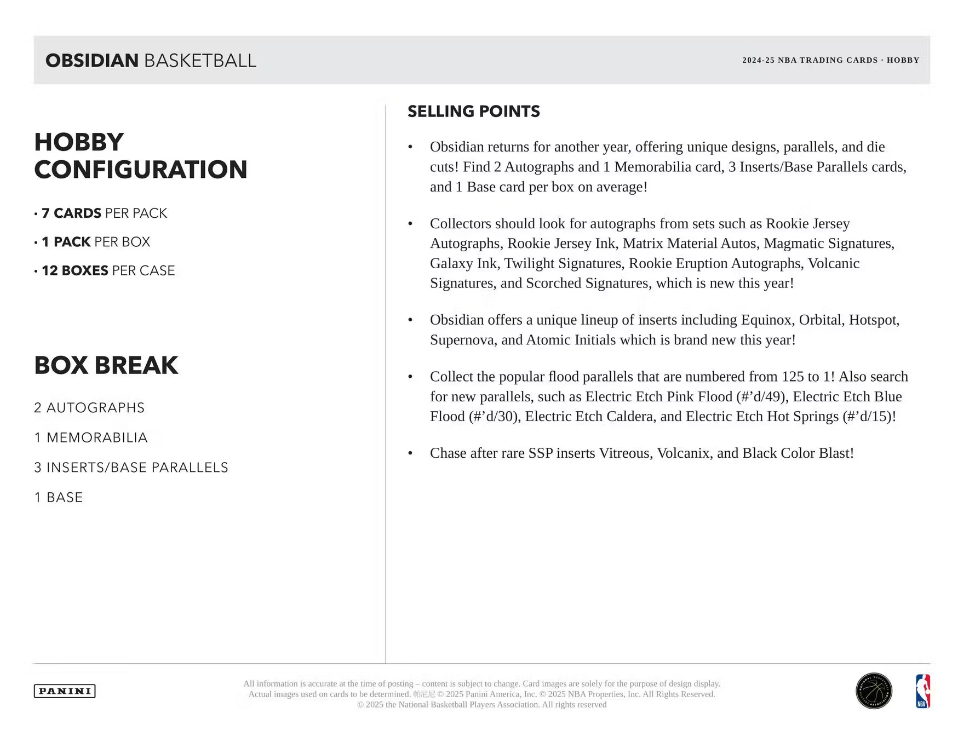 2024/25 Panini Obsidian Basketball Hobby Box