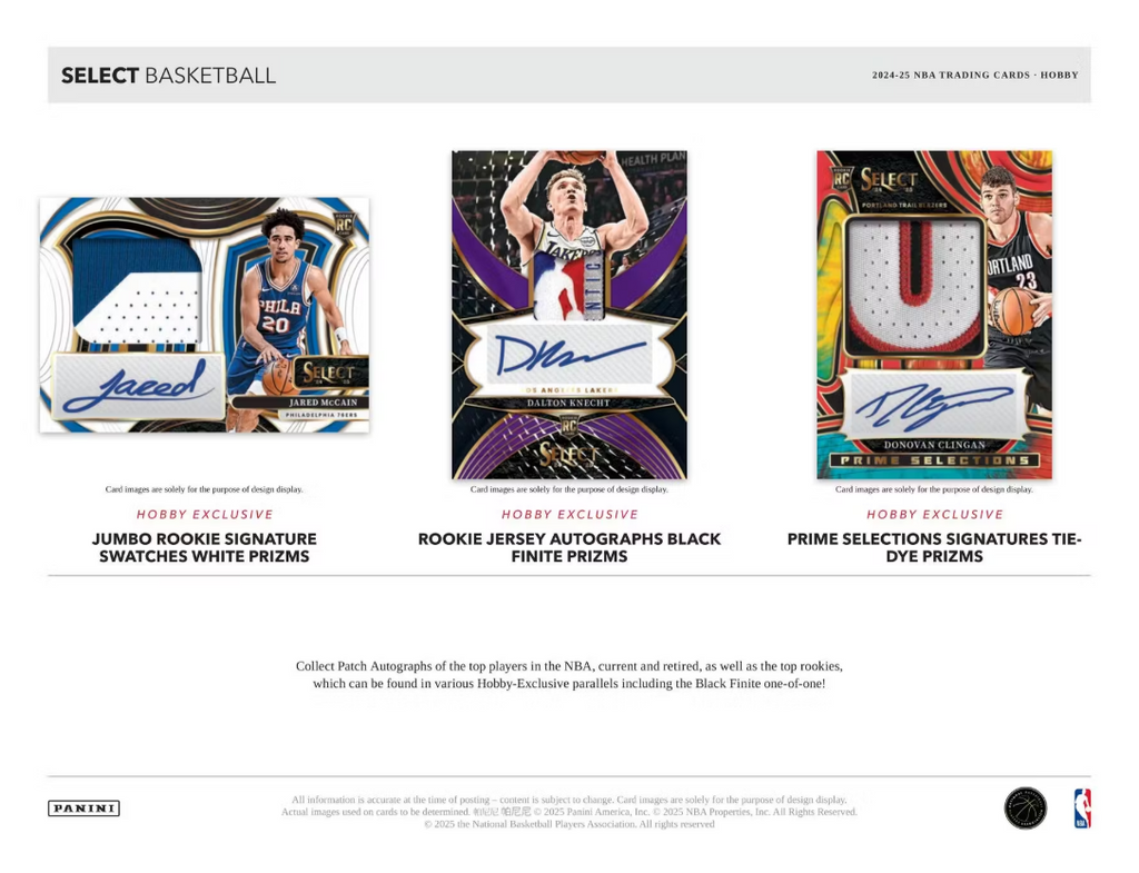 Find 3 Autographs or Memorabilia Cards in each Hobby Box! Search for Autographs from the 2024 NBA Draft as well as superstars and legends! Find autographs of the top rookies and vets in Hobby-Exclusive parallels in the sets Signatures, In Flight Signatures, Rookie Signatures, Prime Selections Signatures and Select Pairing Signatures!