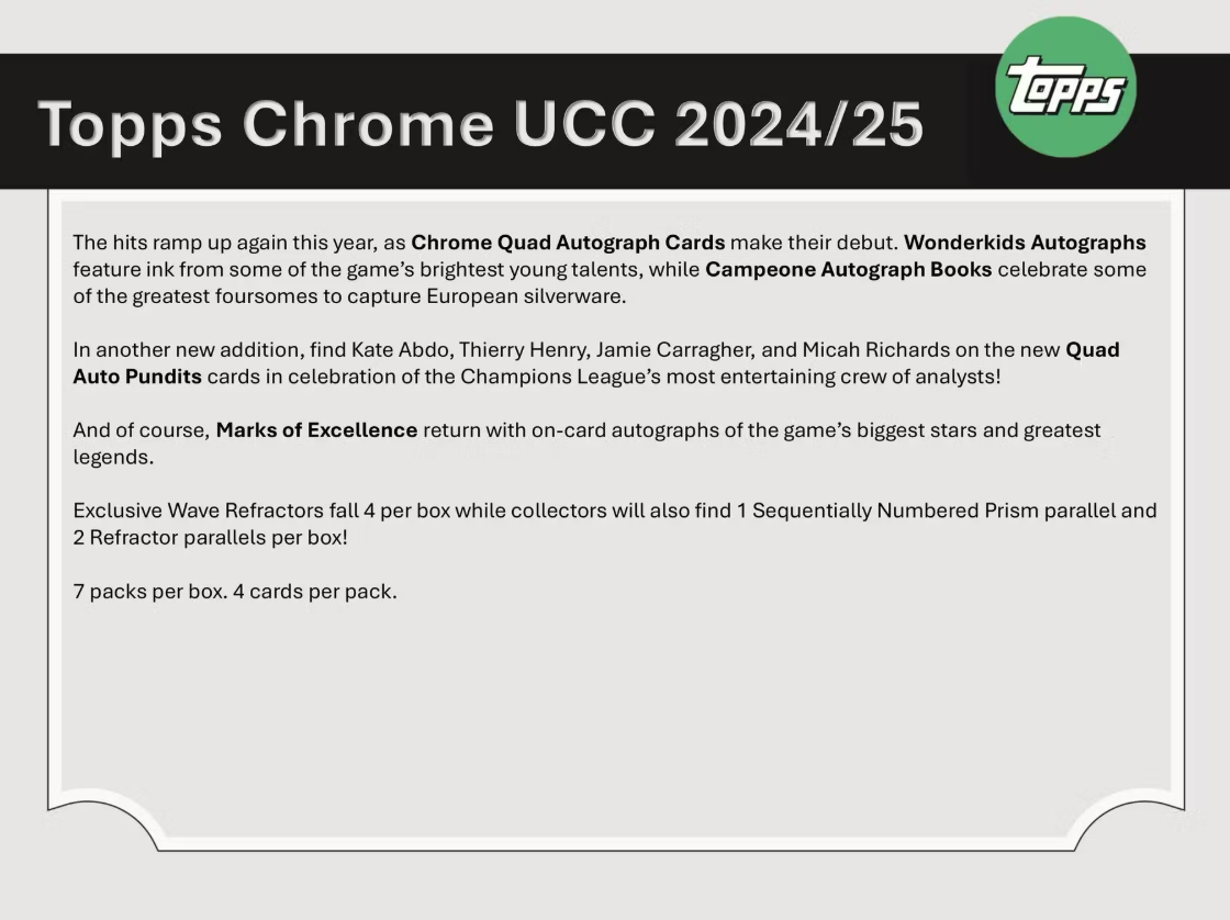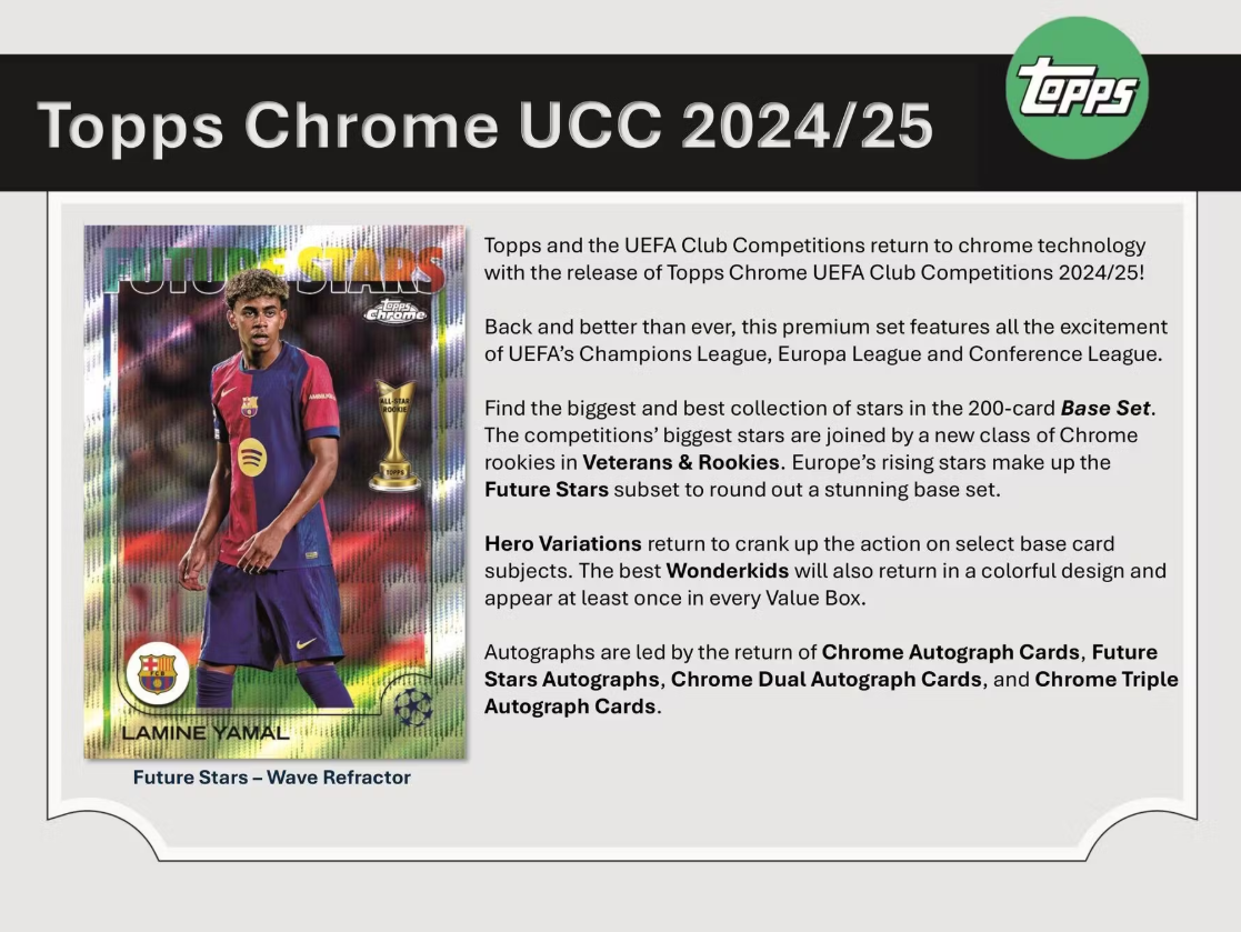 Topps and the UEFA Club Competitions return to chrome technology with the release of Topps Chrome UEFA Club Competitions 2024/25!