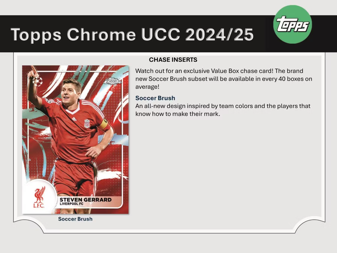 Watch out for an exclusive Value Box chase card! The brand new Soccer Brush subset will be available in every 40 boxes on average!
