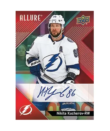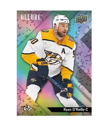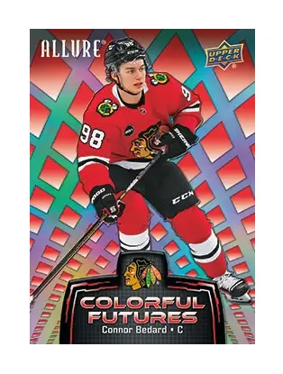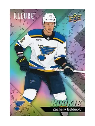 THE BASE SET: Allure® Hockey returns with a 150-card Base Set consisting of 100 veteran standouts and 50 rookies - the latter falling 2 per box, on average. From the popular Black Rainbow, Red Rainbow and Orange Slice parallels to the Blaster-exclusive Glitter Bomb parallel, the parallel lineup appeals to a wide variety of collectors, especially player and set collectors.