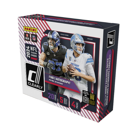 Configuration: 4 Panini Clearly Donruss Football Hobby Packs per 2024 Panini Clearly Donruss Football Hobby Box, 5 Panini Clearly Donruss Football Cards per 2024 Clearly Donruss Football Hobby Pack