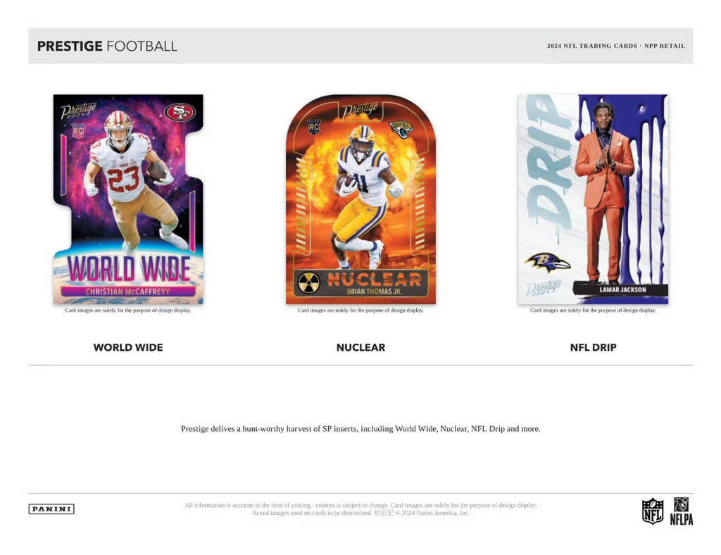 Prestige delives a hunt-worthy harvest of SP inserts, including World Wide, Nuclear, NFL Drip and more.