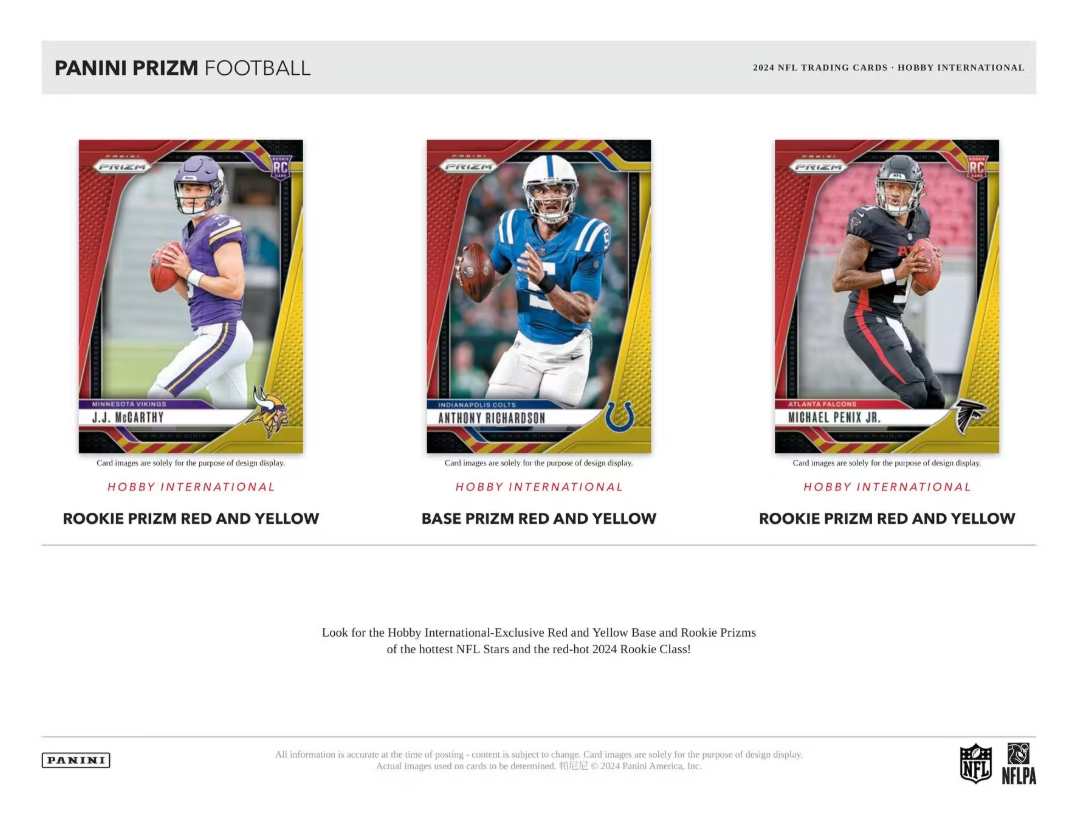 Look for Hobby International- Exclusive Red and Yellow Prizm Parallels of Base and the hottest 2024 Rookies!