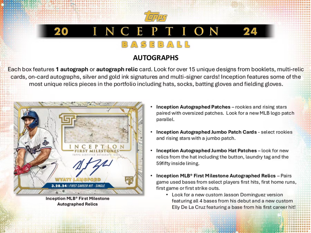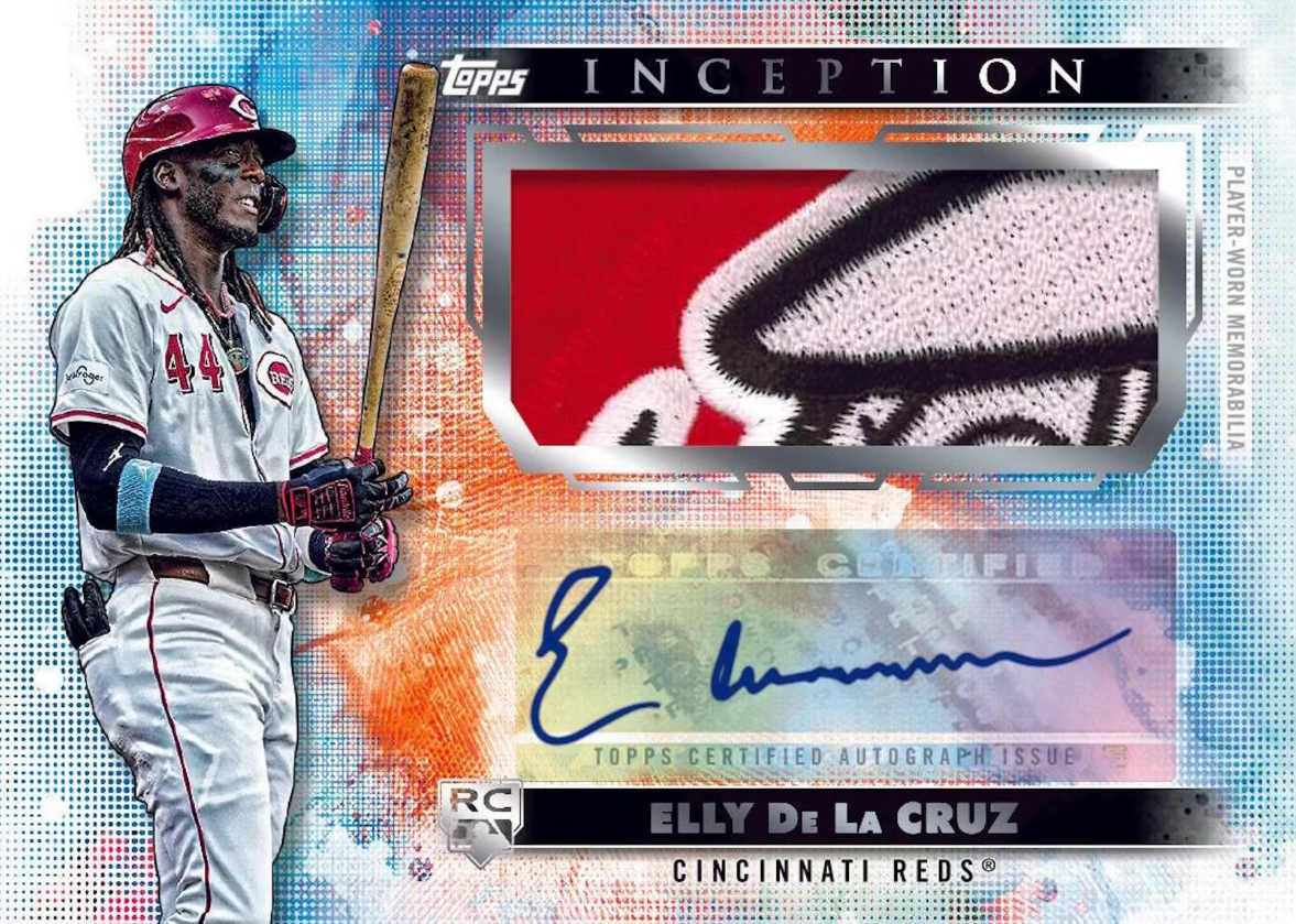 Inception Autographed Patches: rookies and rising stars paired with oversized patches. Look for a new MLB logo patch parallel.