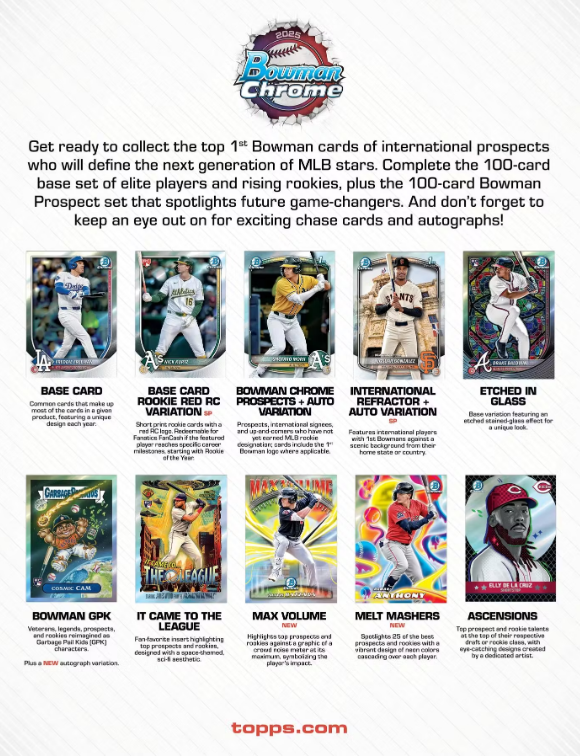 2025 Bowman Chrome kicks off with an electrifying lineup of top-tier prospects!