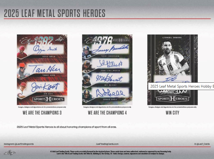 WE ARE THE CHAMPIONS 3 / WE ARE THE CHAMPIONS 4 / WIN CITY: 2025 Leaf Metal Sports Heroes is all about honoring champions of sport from all eras.