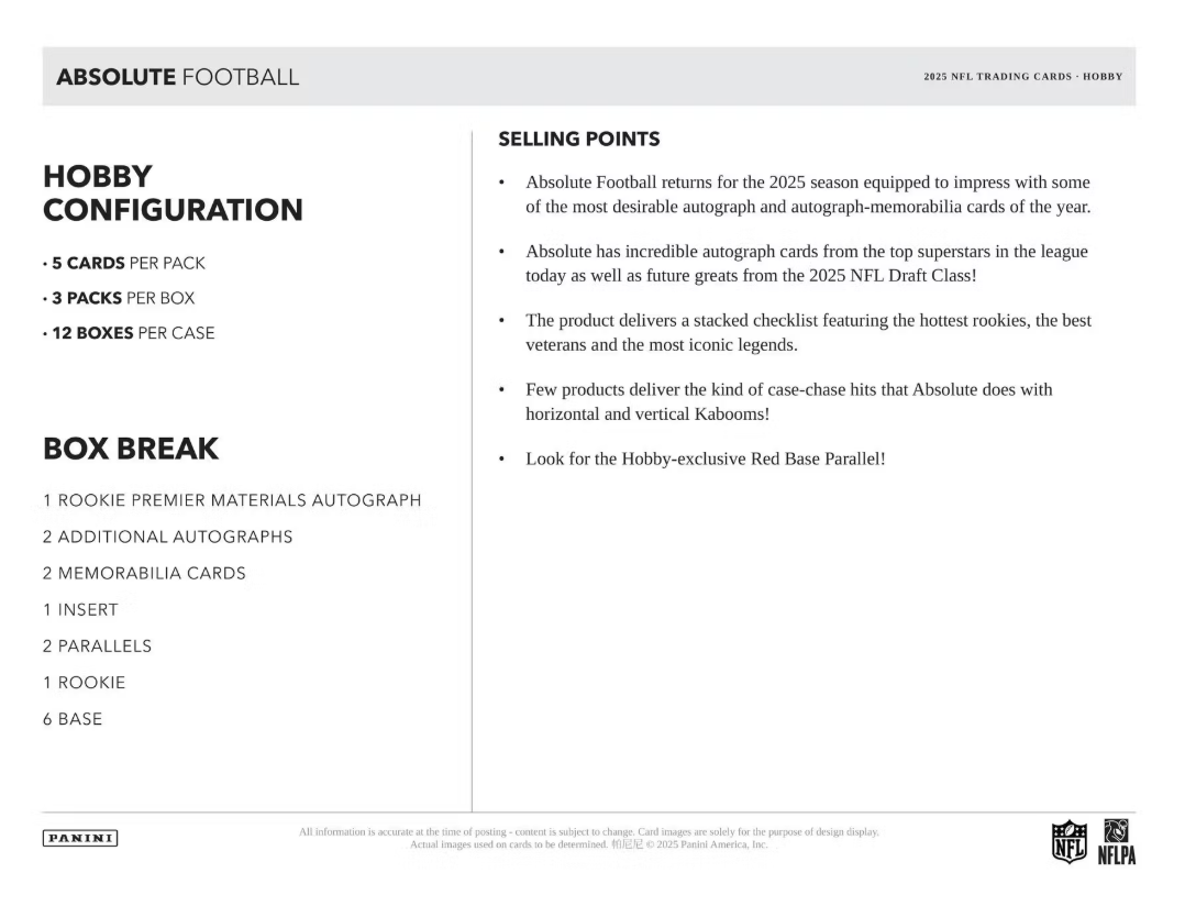 Absolute has incredible autograph cards from the top superstars in the league today as well as future greats from the 2025 NFL Draft Class!