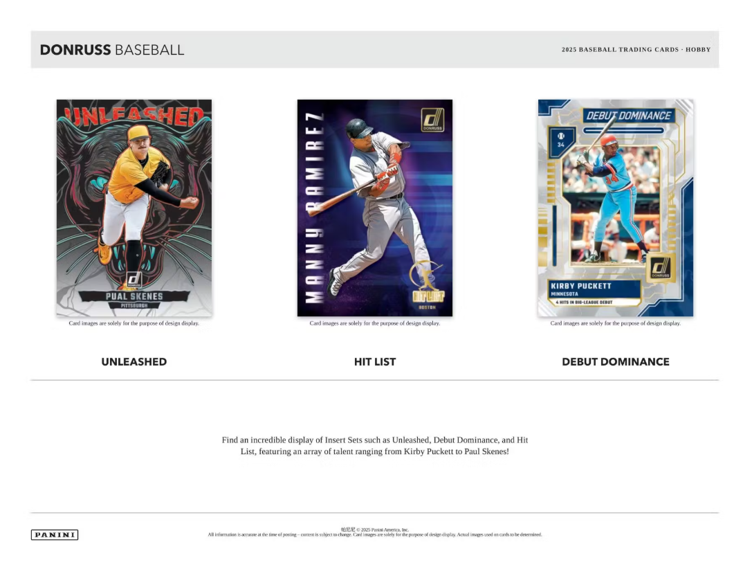 Find an incredible display of Insert Sets such as Unleashed, Debut Dominance, and Hit List, featuring an array of talent ranging from Kirby Puckett to Paul Skenes!