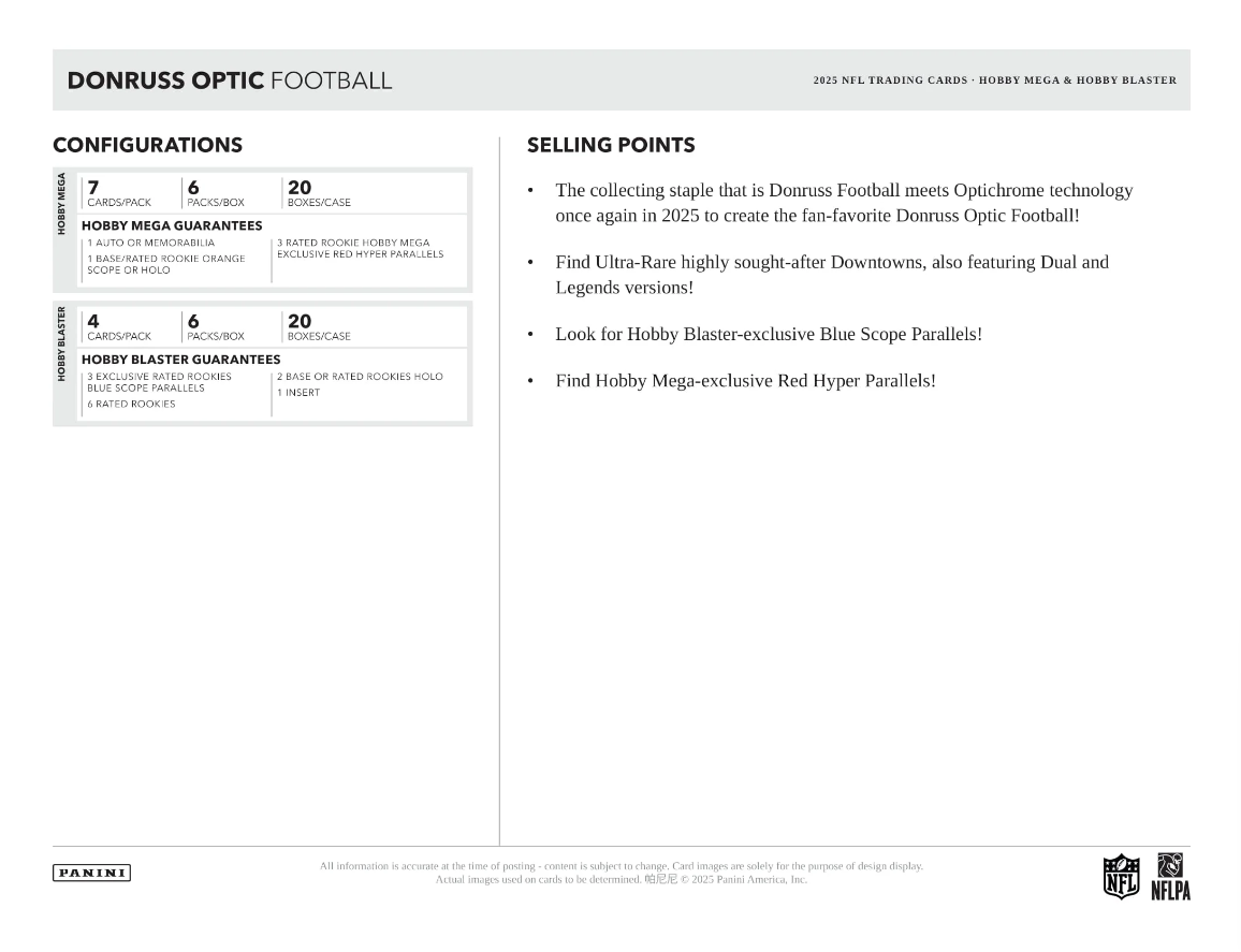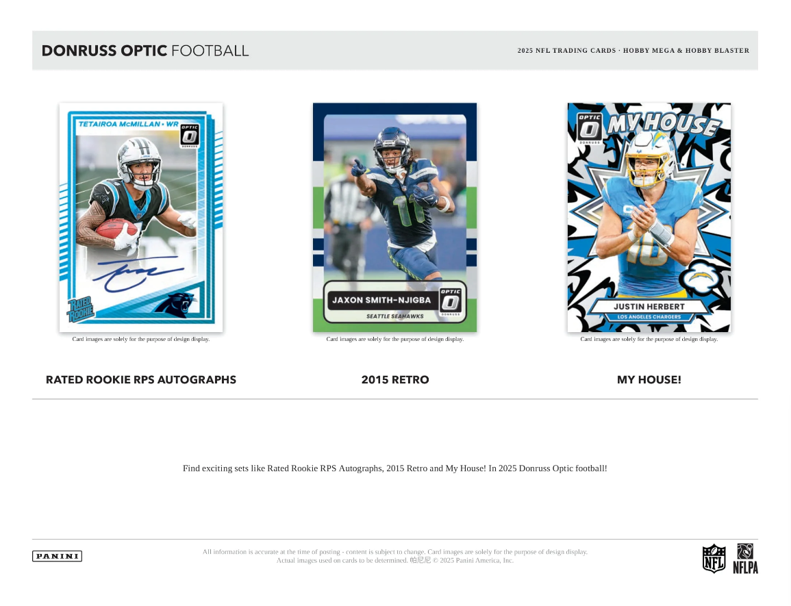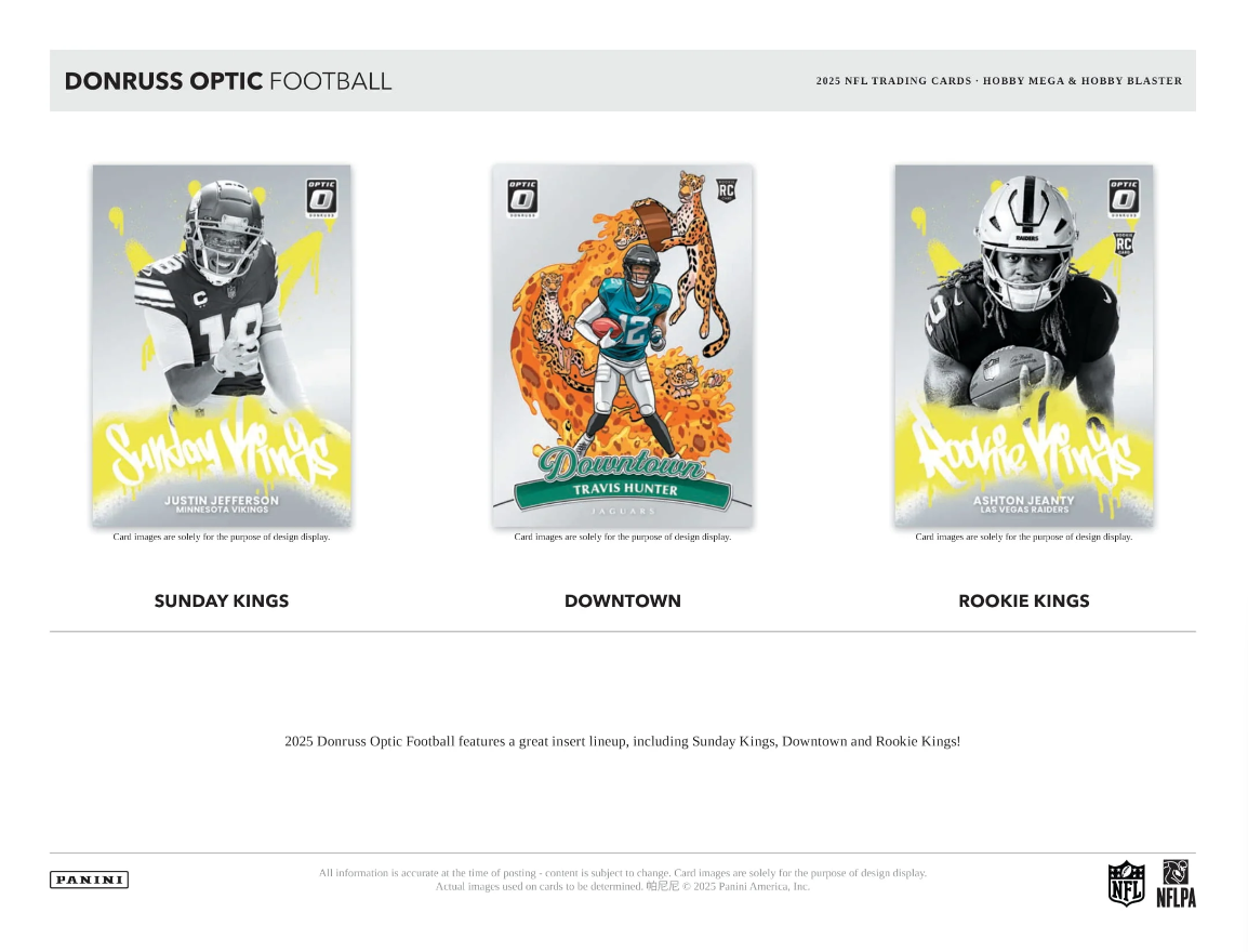 - The collecting staple that is Donruss Football meets Optichrome technology once again in 2025 to create the fan-favorite Donruss Optic Football!