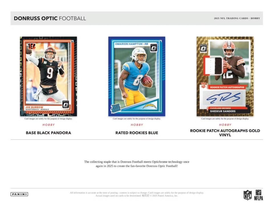 The collecting staple that is Donruss Football meets Optichrome technology once again in 2025 to create the fan favorite Donruss Optic Football!