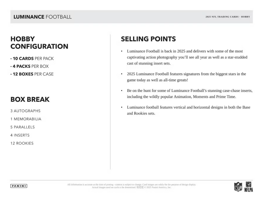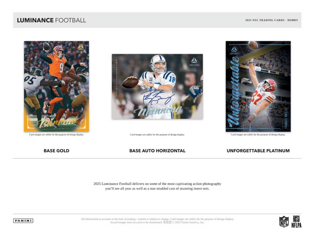 Luminance football features vertical and horizontal designs in both the Base and Rookies sets.