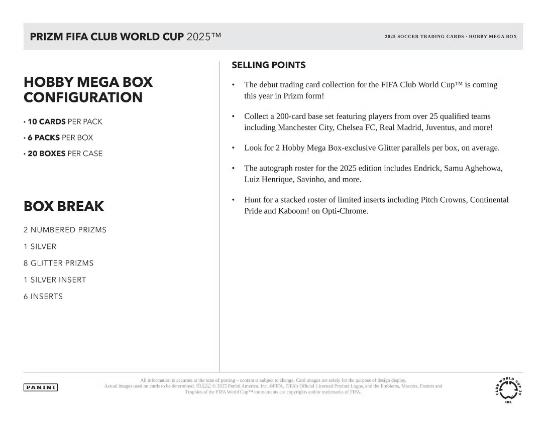 2025 Panini Prizm FIFA Club World Cup Soccer Hobby Mega Box
