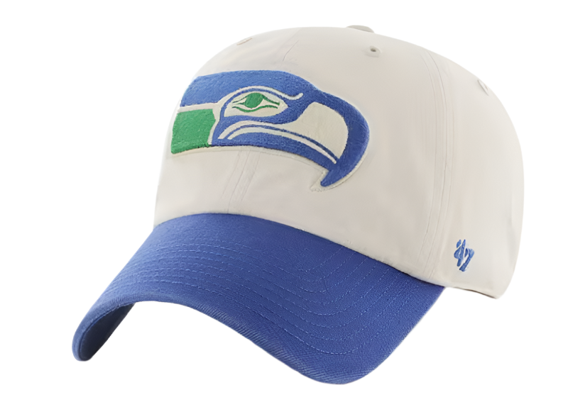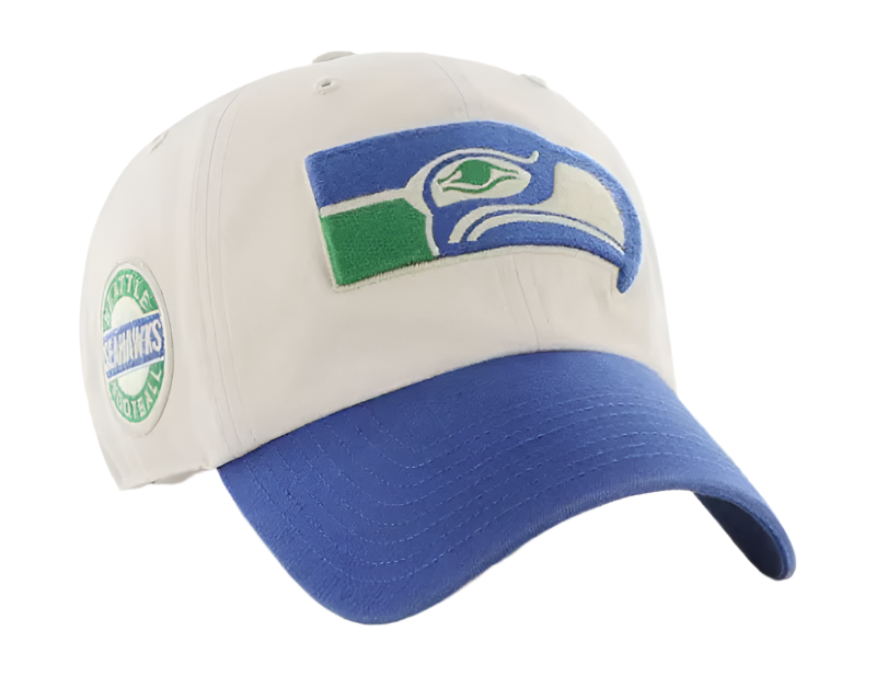 The '47 Brand Bone Seattle Seahawks Historic Sidestep Clean Up Strapback offers a classic, adjustable fit with a vintage-inspired design. Crafted for comfort and durability, this cap features the iconic Seattle Seahawks logo, making it an ideal choice for dedicated fans seeking authentic team style with a timeless look.