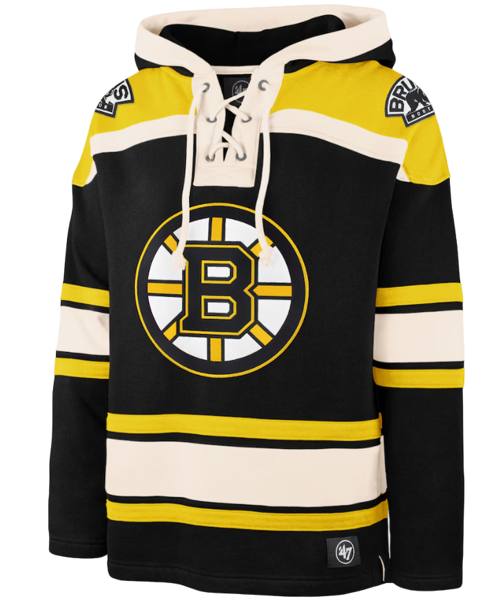 Gear up like a true Bruins fan in this sleek '47 Brand hoody. The jet black Superior Lacer design delivers classic team pride with a modern edge—perfect for game day or casual wear. Premium construction keeps you comfortable whether you're cheering from the stands or just showing your Black and Gold loyalty around town. Lace up your fandom and rep Boston hockey in style.