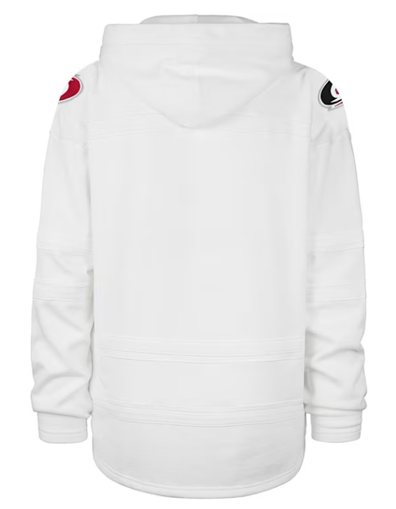 Introducing the '47 Brand Carolina Hurricanes White Superior Lacer Hoodie - the ultimate in comfort and style. Made with high-quality materials, this hoodie features a unique lace-up design and the iconic Carolina Hurricanes logo. Stay warm and show your team pride in style with this must-have hoodie.