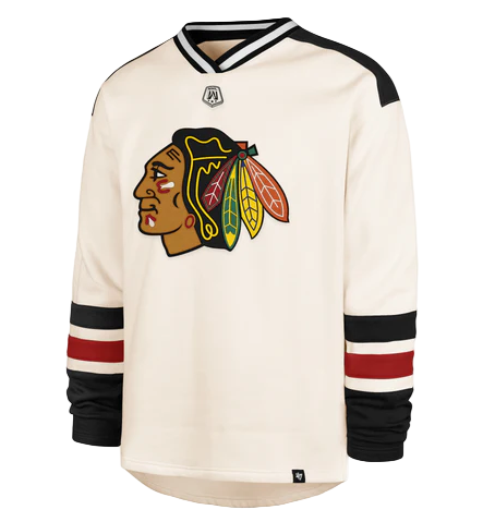 Gear up like a goalie with this '47 Brand Chicago Blackhawks pullover. The cream colorway keeps things fresh while the Benchmark Netminder design celebrates the heart of the ice. Perfect for fans who live and breathe hockey, this pullover delivers comfort and team pride in one cozy package. Whether you're cheering from the stands or just showing your Blackhawks love, this is your go-to layer for game day and beyond.