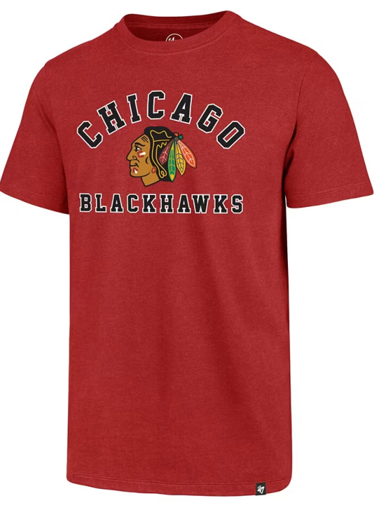 Rock the iconic red of the Windy City with this '47 Brand Chicago Blackhawks tee. Featuring a bold varsity arch design that celebrates hockey heritage, this classic club tee brings timeless style to your everyday rotation. Crafted for comfort and durability, it's the perfect way to show your Blackhawks pride whether you're catching the game or just hanging out. Game day or any day—this tee scores big.