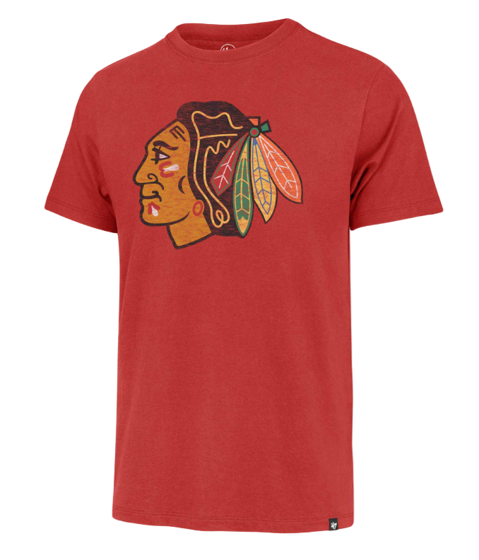 Rock the iconic Blackhawks spirit in this bold '47 Brand tee featuring that signature Rescue Red hue. The Grit Scrum design brings vintage hockey attitude with modern comfort, perfect for die-hard fans who want their team pride on full display. Whether you're heading to the rink or just showing your colors around town, this tee delivers authentic team style with a playful edge. Comfortable, durable, and unmistakably Blackhawks.