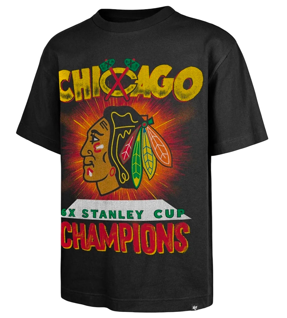 Throw it back with this '47 Brand Chicago Blackhawks tee that captures vintage hockey vibes in timeless black. The Sigma Foundation design brings classic Blackhawks pride to your everyday rotation, perfect for die-hard fans who appreciate quality craftsmanship and retro style. Soft, comfortable, and ready to rep your team with authentic flair.