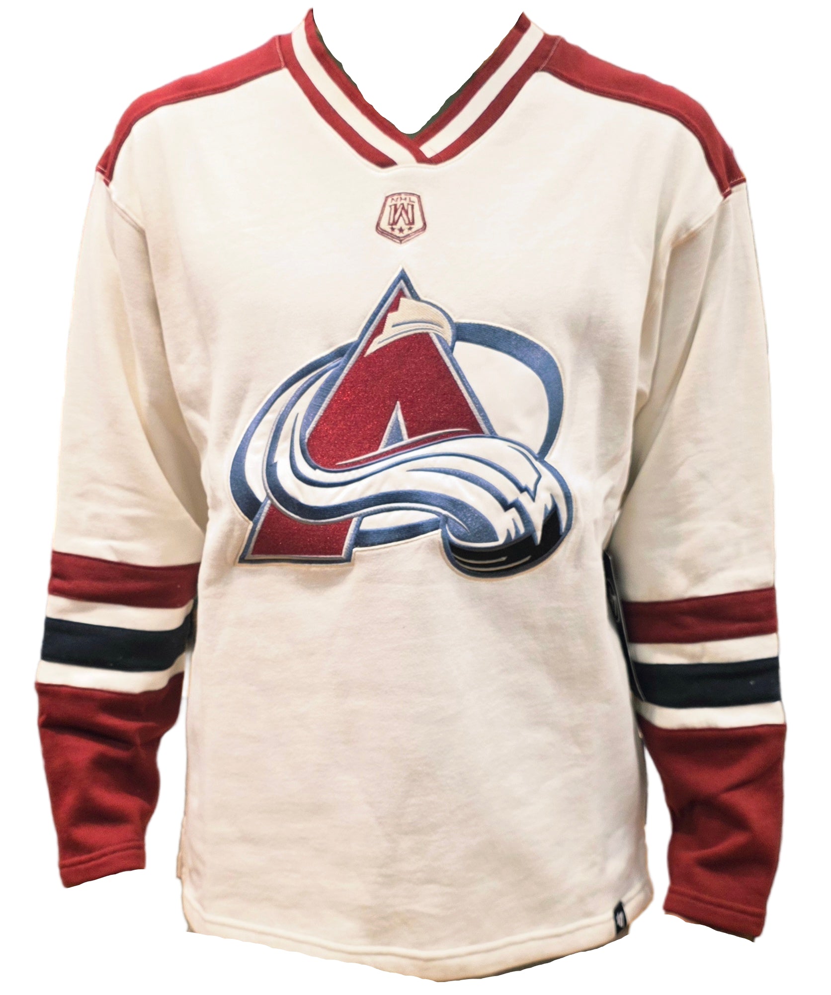 Gear up like a goalie with this '47 Brand Colorado Avalanche pullover in classic cream. The Benchmark Netminder design channels vintage hockey vibes with bold team graphics that'll have you looking sharp whether you're cheering from the stands or catching games at your favorite sports bar. Soft, comfortable fabric keeps you cozy through every period, making it the perfect layer for any Avalanche fan ready to show their stripes.