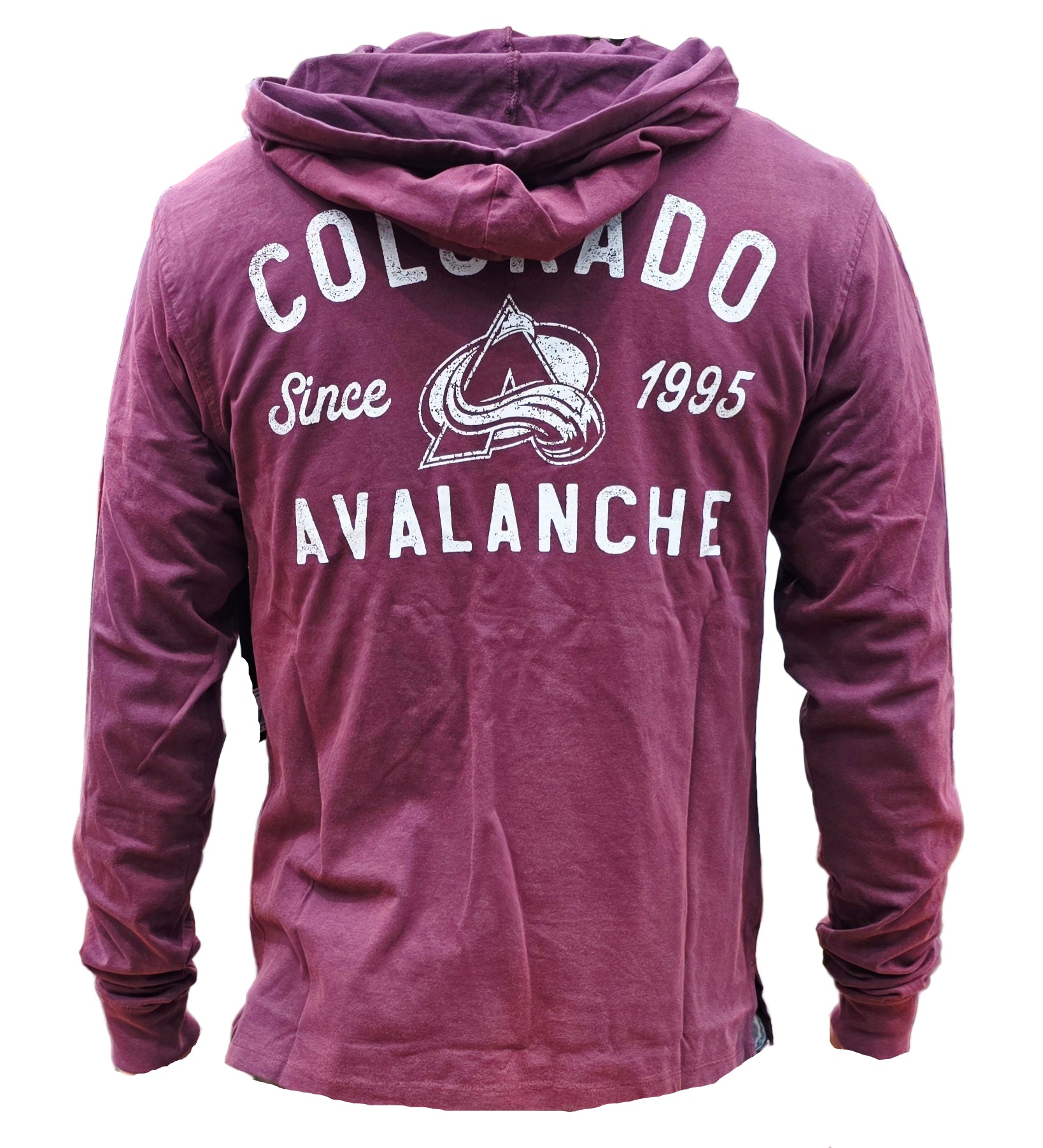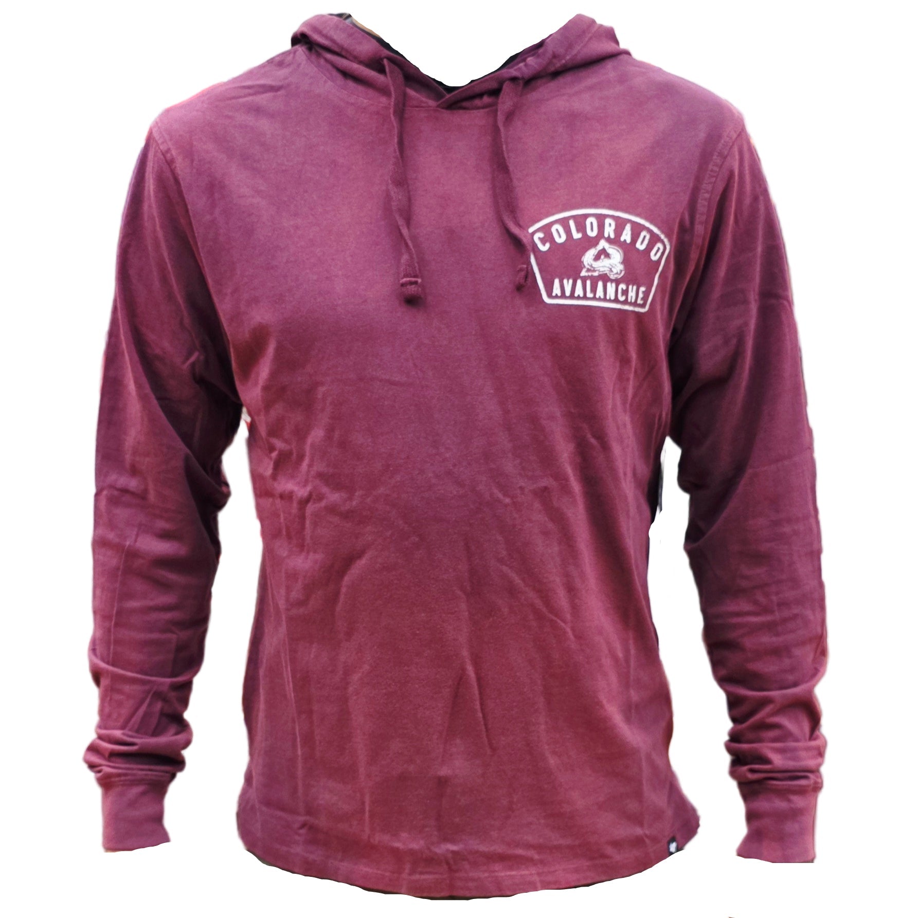 Rock your Avalanche pride with this '47 Brand long sleeve tee featuring a laid-back overhand river graphic in dusted cardinal red. The attached hood adds an extra cozy layer perfect for game days or casual hangouts. Soft, comfortable fabric keeps you feeling great whether you're cheering from the stands or just showing your team spirit around town. A must-have for any Avs fan's collection.
