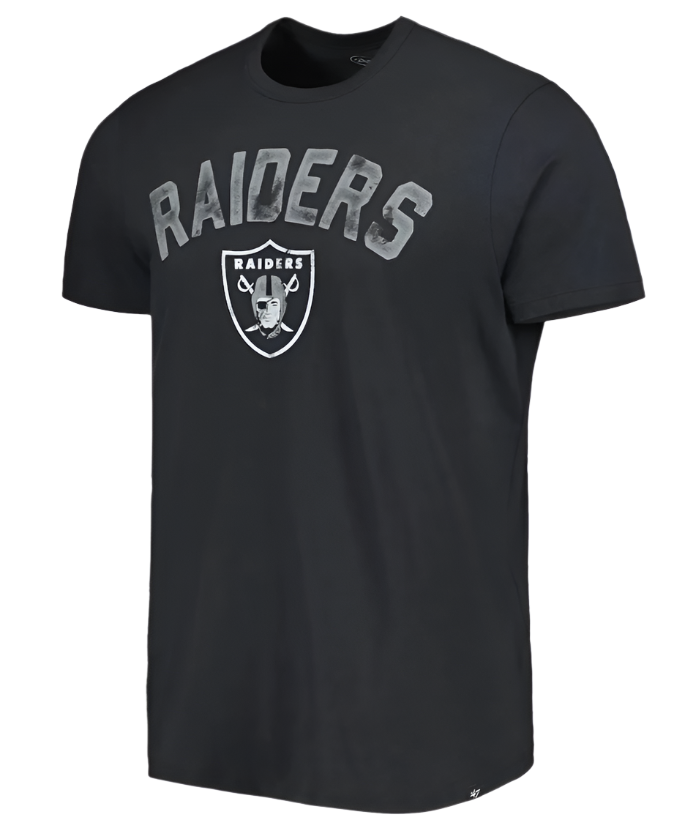 The Men's '47 Black Las Vegas Raiders All Arch Franklin T-shirt is a must-have for devoted Las Vegas Raiders fans. Its distressed screen print graphics proudly display the iconic Raiders logo, showcasing unwavering support for the team. Durable cotton construction ensures comfort and breathability, making it perfect for game days or everyday wear. Represent the Las Vegas Raiders in style and show allegiance to the NFL's most dedicated fanbase.