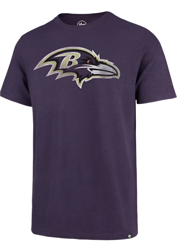 Show your Baltimore Ravens pride with the '47 Brand Grape Grit Scrum Tee. Crafted for comfort and durability, this tee features a rich grape color and bold Ravens branding, making it perfect for game days or casual wear. Its quality fabric ensures a soft feel and lasting wear, while the expert design highlights your team spirit with subtle yet striking style. Ideal for dedicated fans seeking both performance and fashion in their sports apparel.