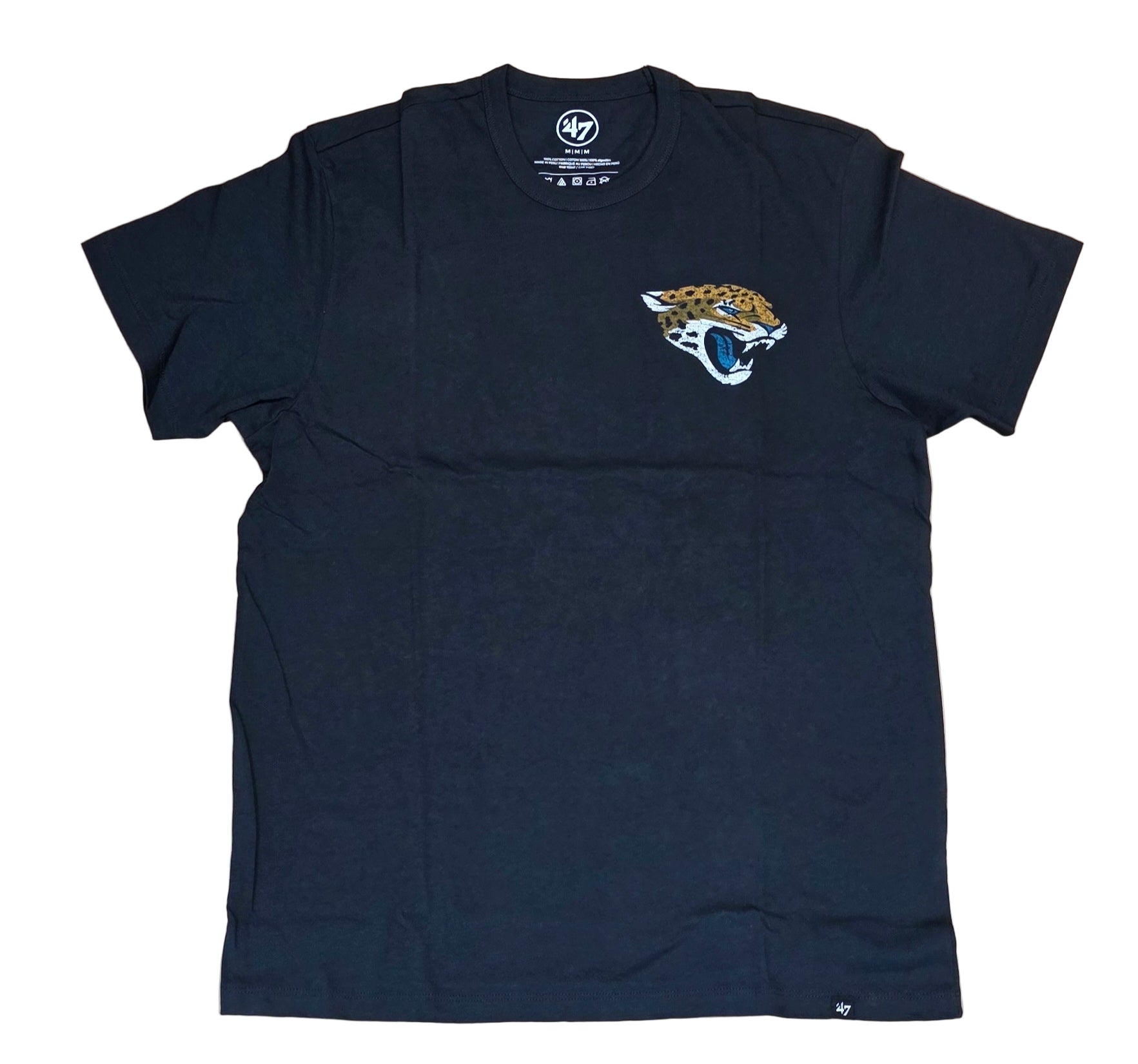 Show your loyal support with the '47 Brand Jacksonville Jaguars Flint Black Back to Back Franklin Tee. Crafted for comfort and durability, this tee features premium fabric that ensures long-lasting wear. Its sleek black design showcases the Jaguars logo prominently, making it a perfect choice for game days or casual wear. Designed by '47 Brand, known for quality sports apparel, this shirt blends style and function for dedicated fans looking to represent their team confidently.