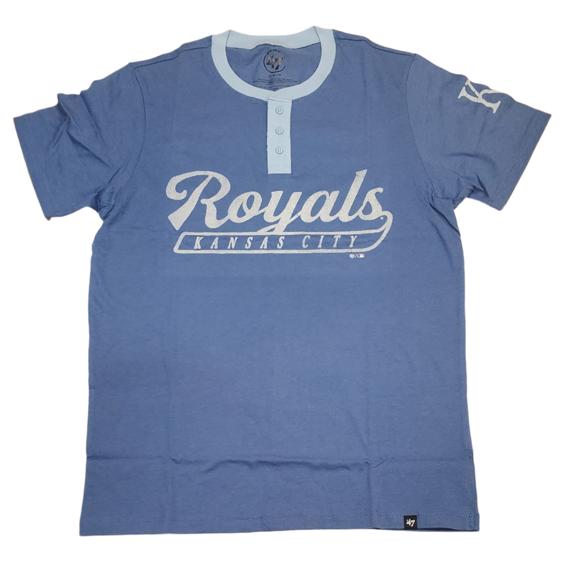 Get ready for game day in style with the '47 Brand Kansas City Royals Cadet Blue Westend Kenley Tee. With its comfortable fit and bold team logo, this tee is perfect for showing your support for the Royals. Made from high quality materials, it's built to last through all the action of the season. Don't miss out on this must-have tee for any die-hard Royals fan.