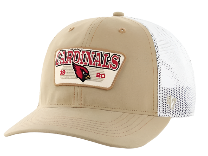 The '47 Brand Khaki Arizona Cardinals Ridgewood Trucker RF Snapback combines classic style with team pride. Featuring a structured khaki front and breathable mesh back, this cap offers comfort and durability. The raised embroidered Cardinals logo on the front showcases your support with a refined look, while the adjustable snapback ensures a perfect fit. Ideal for fans seeking a versatile, high-quality hat for game day or everyday wear.