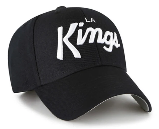 Rock the Kings' iconic black script with this classic '47 Brand MVP cap. The adjustable velcro strap keeps your fit locked in all game long, whether you're cheering from the stands or repping LA around town. Structured six-panel design meets timeless style—a must-have for any hockey fan who knows their colors. Snap it on and show your Kings pride.
