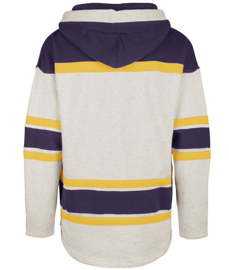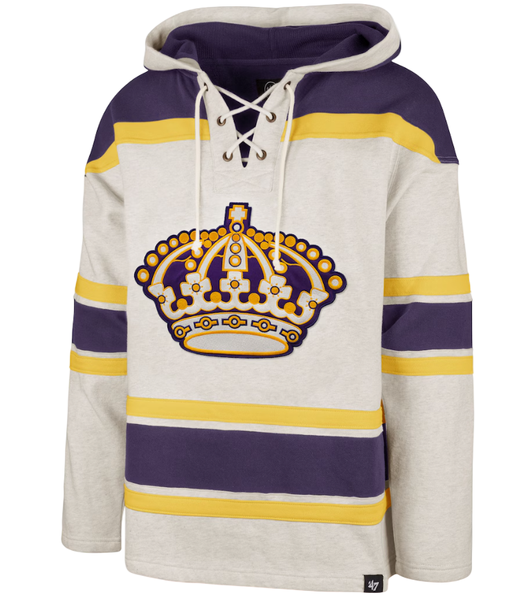 Throw it back to vintage Kings glory with this '47 Brand Rockaway Lacer Hoody. Crafted in soft oatmeal, this relaxed-fit essential features classic lace-up detailing at the shoulders and a cozy drawstring hood—perfect for layering on game day or kicking back between periods. The timeless design celebrates LA hockey heritage while keeping you comfortable whether you're cheering from the stands or just repping your team in style.