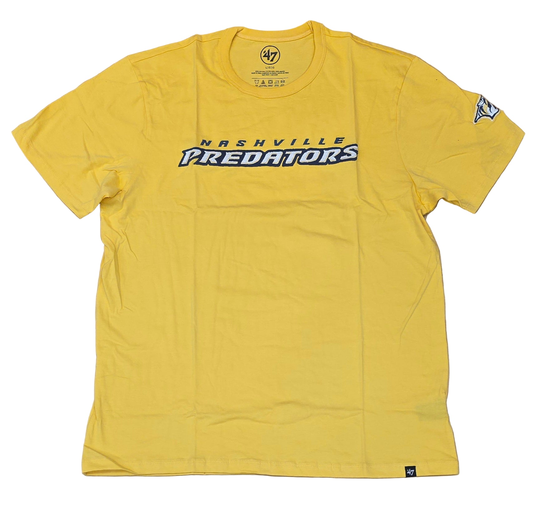 Rock your Nashville Predators pride with this playful '47 Brand tee featuring the iconic Goldfinch design and Franklin Fieldhouse graphics. Crafted for comfort and style, this shirt celebrates Music City's beloved hockey team with a vintage-inspired aesthetic that works whether you're catching a game or just showing your team spirit around town. Perfect for fans who want to rep the Preds with personality.