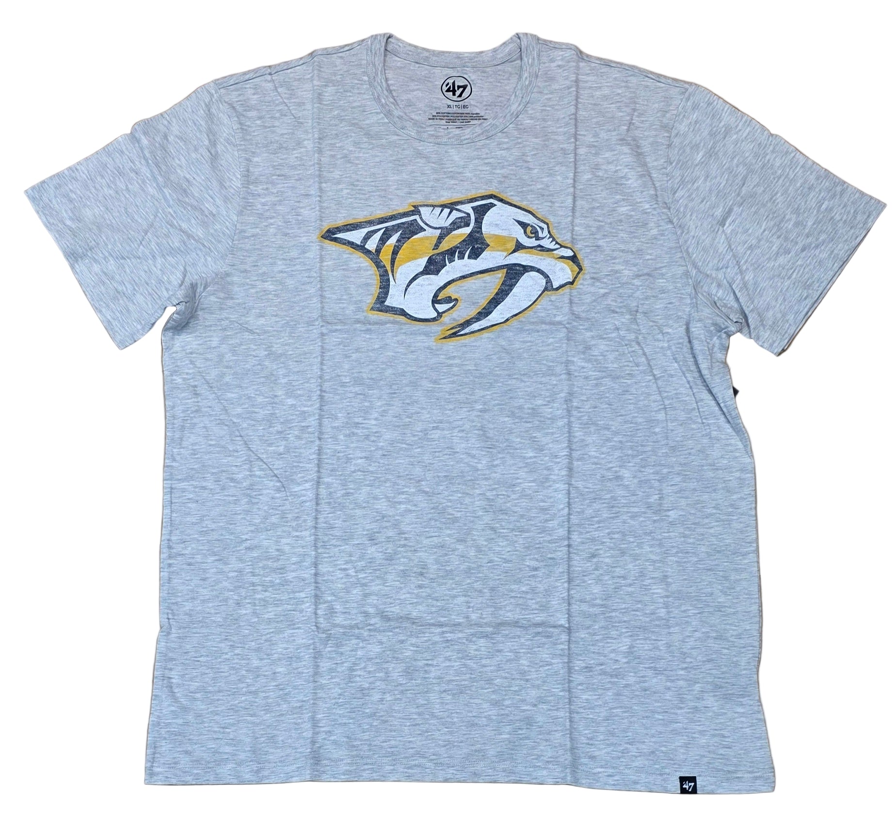 Rock your Nashville Predators pride with this '47 Brand Franklin Tee, featuring a sleek relay grey colorway that's perfect for game day or everyday wear. Crafted with premium quality and that iconic '47 Brand style, this tee delivers comfort and team spirit in one sharp package. Whether you're cheering from the stands or showing your gold and black loyalty around town, this Premier piece keeps you looking sharp while celebrating your favorite NHL squad.