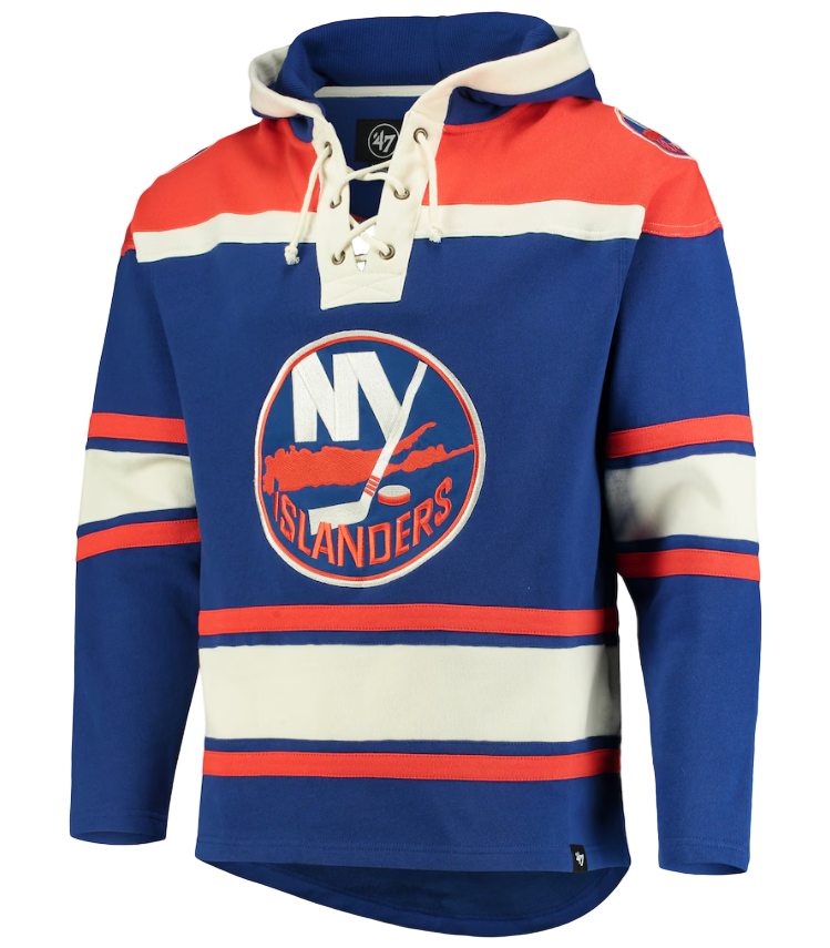 Gear up in true Islander blue with this '47 Brand hoodie that scores major style points. The Superior Lacer design features classic lacing details and premium construction that'll keep you comfortable whether you're cheering from the stands or just repping your team around town. Soft, durable fabric and that iconic royal blue colorway make this a must-have for any devoted Islanders fan. Show your colors with confidence.