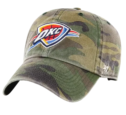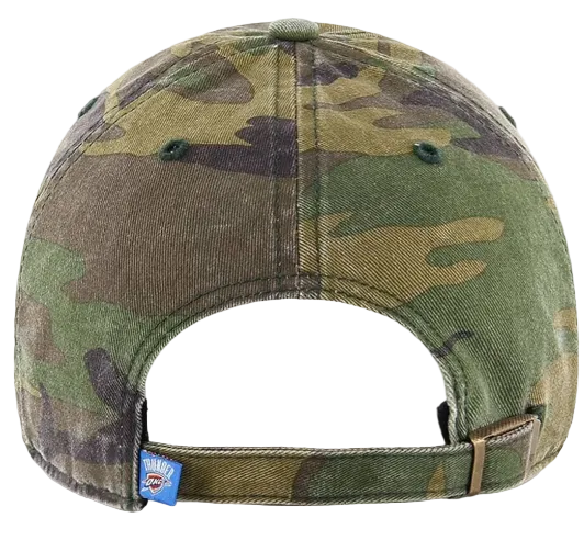 Rock the Thunder's signature style with this '47 Brand Oklahoma City Thunder Camo Clean Up Strapback. The classic camo pattern brings an edgy, tactical vibe to your game day look, while the adjustable strapback ensures the perfect fit for any fan. Whether you're cheering courtside or repping your team around town, this cap delivers authentic Thunder pride with a modern twist. Lightweight and breathable, it's built for comfort during those intense playoff moments or casual everyday wear.