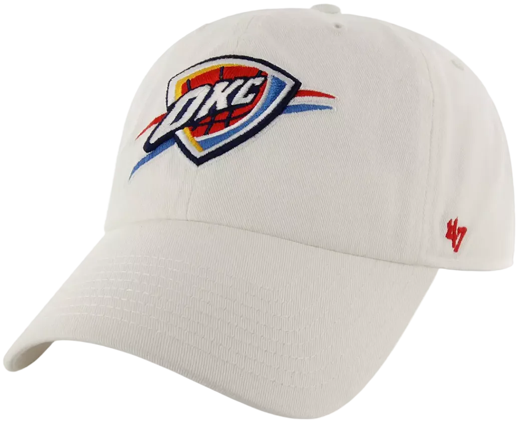 Rock the Thunder's signature style with this classic '47 Brand Clean Up strapback. The crisp white design features bold Oklahoma City Thunder branding that lets your team pride shine without trying too hard. Built with a curved bill and adjustable strapback closure, it's the perfect everyday cap for fans who want comfort and authentic team spirit. Whether you're catching a game or just repping OKC around town, this timeless piece keeps you looking sharp and game-ready.