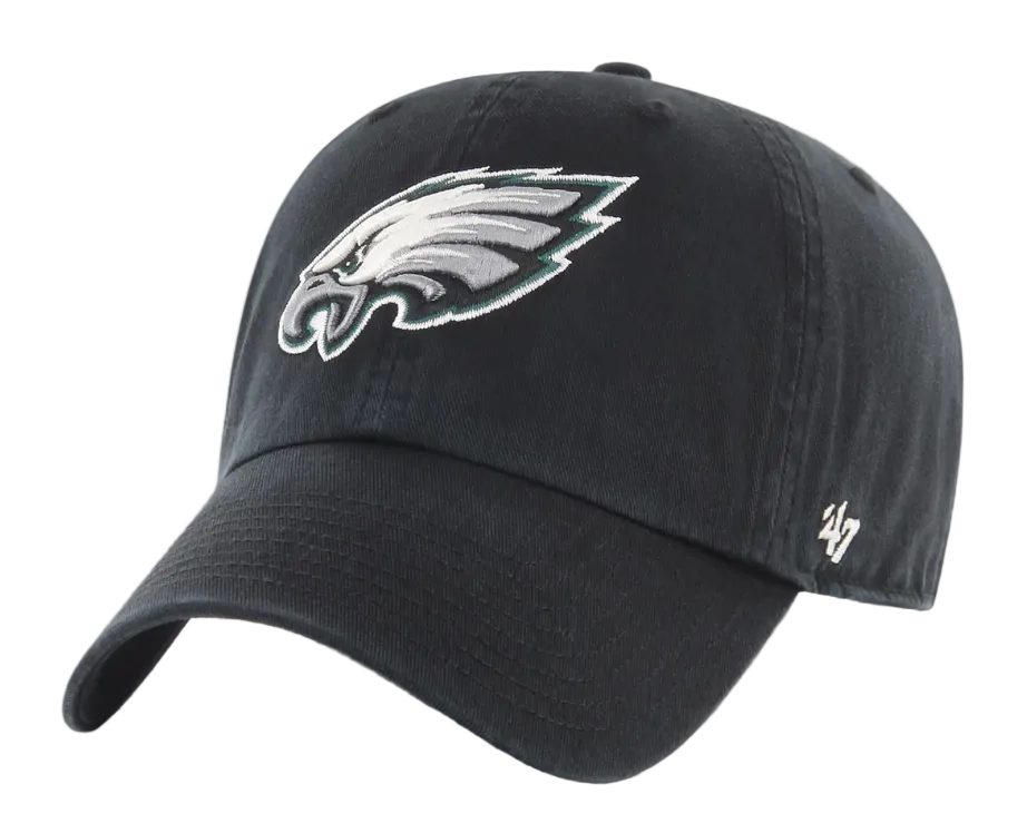 Bring understated Eagles swagger to your game day with this sleek '47 Brand Clean Up strapback. The timeless black base lets that embroidered Eagles logo take center stage, while the curved bill and structured crown deliver that polished, laid-back vibe. The adjustable strapback fits most heads comfortably, and premium construction means it'll stay looking fresh season after season. Perfect for fans who prefer clean lines over flashy designs—proof that sometimes less is more when you've got the Birds on your brain.