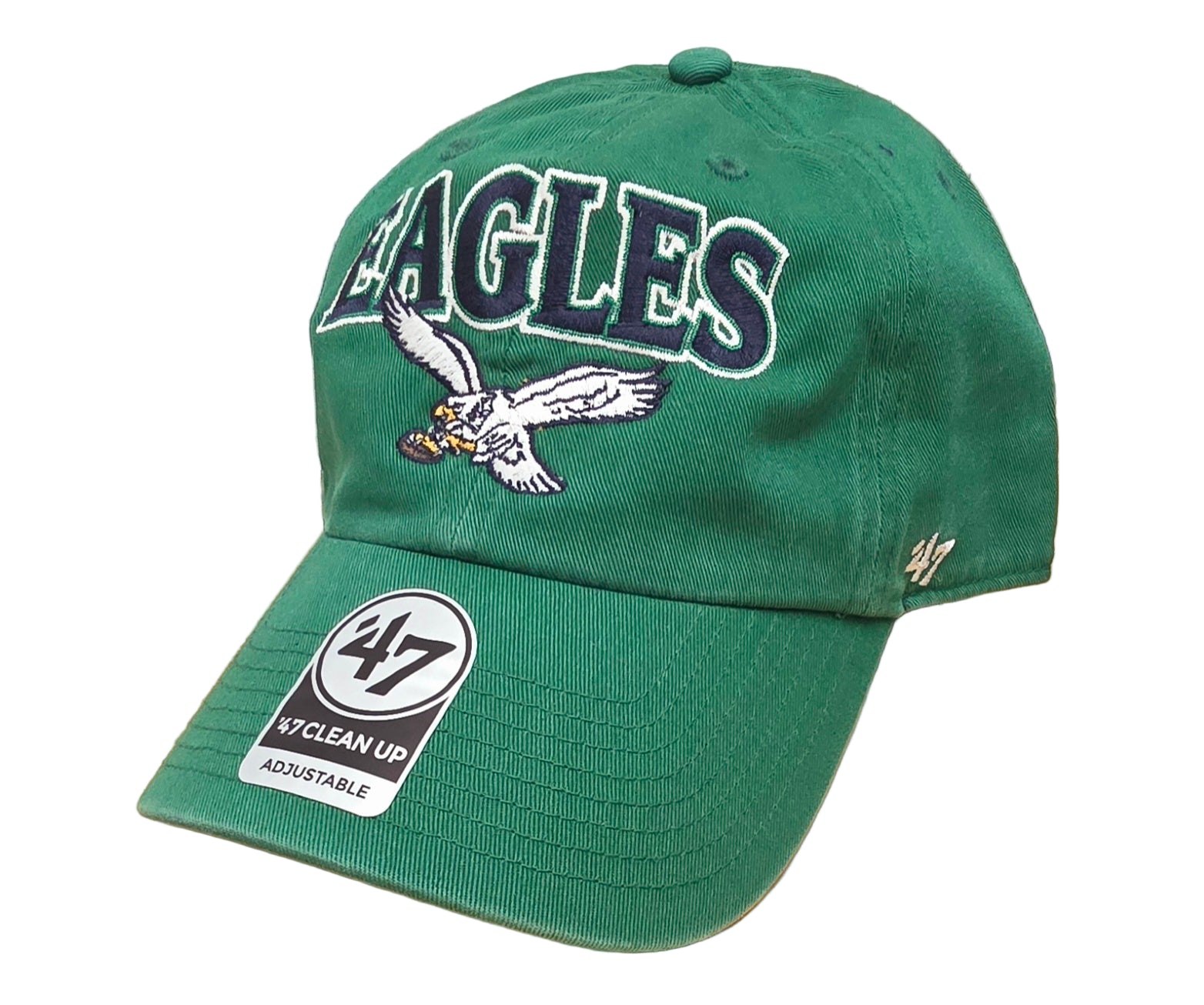 The ’47 Brand Philadelphia Eagles Historic Kelly Domestic Tuscaloosa Clean Up Strapback is a premium cap combining vintage charm with modern comfort. Crafted with durable materials, it features a classic strapback design for an adjustable, secure fit. Showcasing the iconic Eagles historic logo in Kelly green, this hat is ideal for dedicated fans seeking authentic style and everyday wearability.