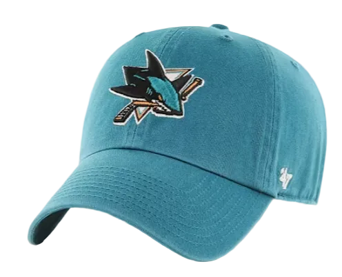 Rock the iconic teal of San Jose with this '47 Brand Clean Up cap. The adjustable strapback fits all head sizes, while the curved bill and embroidered Sharks logo deliver classic hockey style. Perfect for game day or everyday wear, this vintage-inspired hat keeps you looking sharp whether you're cheering from the stands or showing your team pride around town.