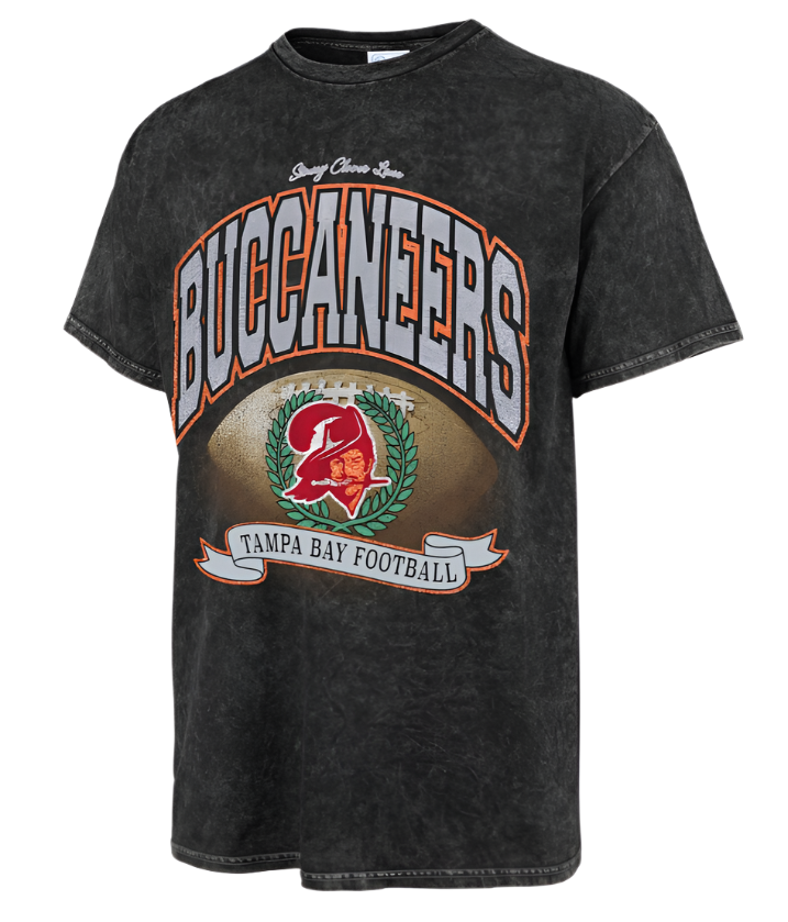 Gear up for Tampa Bay Buccaneers game day in style with this Stoney Clover Lane x '47 Glitter Rocker Retro Tubular T-Shirt. With printed Tampa Bay Buccaneers graphics detailed with glitter and a vintage acid wash, this tee puts the fun in function. It's made from a soft blend of fabrics, making it a perfect casual option for your active lifestyle.