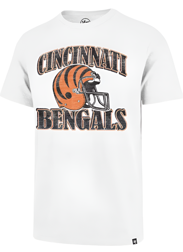 The '47 Brand White Wash Cincinnati Bengals Overrun Scrum Tee offers a vintage-inspired look with a soft, worn-in feel. Crafted for comfort and style, this tee features authentic team graphics that showcase your Bengals pride. Its relaxed fit and breathable fabric make it ideal for game days or casual wear, combining durability with a classic aesthetic that appeals to dedicated fans.