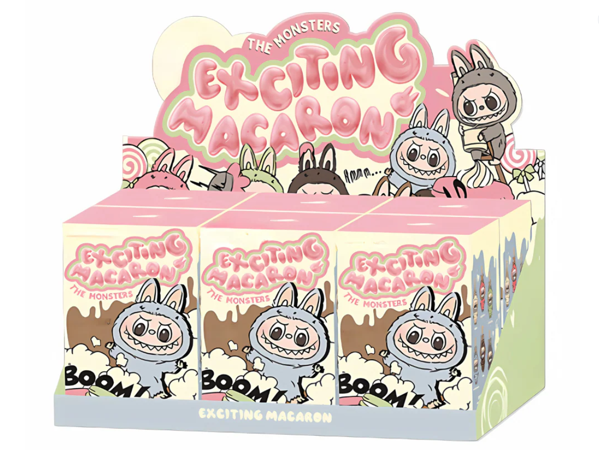 The Exciting Macaron Blind Box series brings pastel character art and food-themed storytelling to your figure collection. Each box contains one surprise vinyl figure from THE MONSTERS line. Styled after dessert flavors and dressed in bunny-hooded outfits, these figures are designed for display collectors, pastel enthusiasts, and art toy fans. From Lychee Berry to Sea Salt Coconut, every figure combines confectionery concepts with creative styling. Crafted from ABS and PVC, each character offers sculpted details and expressive faces printed on glossy vinyl.