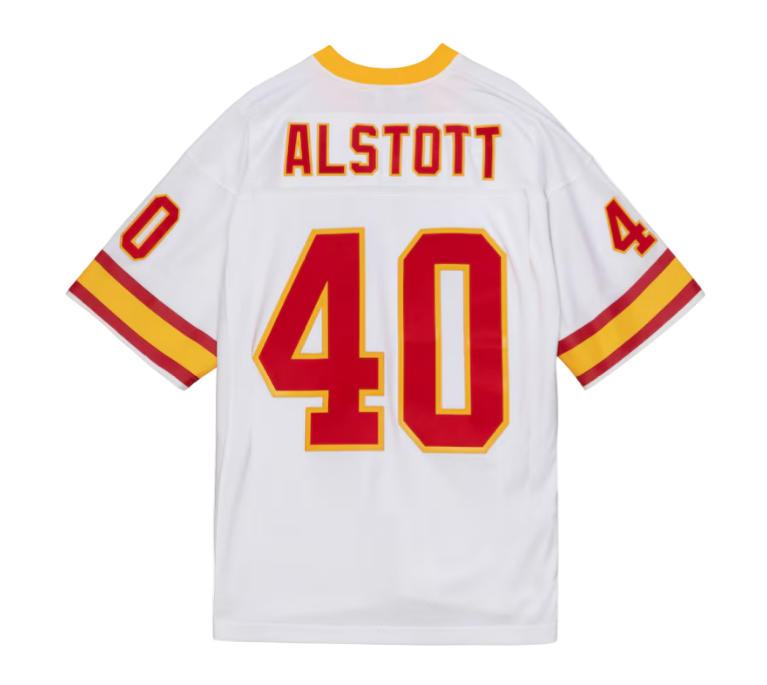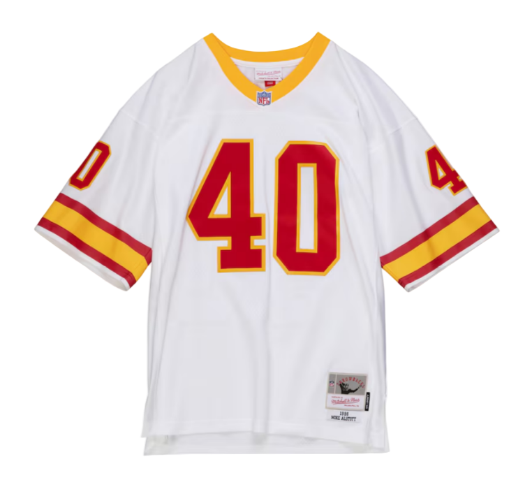 Rep one of your all-time favorite pros with this Mike Alstott 1996 Legacy Jersey. The throwback details are inspired by what the Tampa Bay Buccaneers wore in days gone by. Every stitch on this jersey is tailored to exact team specifications, delivering outstanding quality and a premium feel.