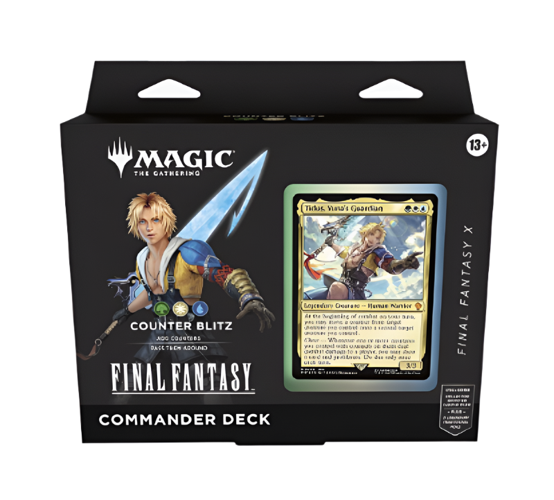 In Commander, four players come together to show their strength and strategy, with one player coming out on top. Each 100-card ready-to-play Magic: The Gathering®—FINAL FANTASY Commander Deck makes it easy for Commander fans in your store to grab a deck and play right away.