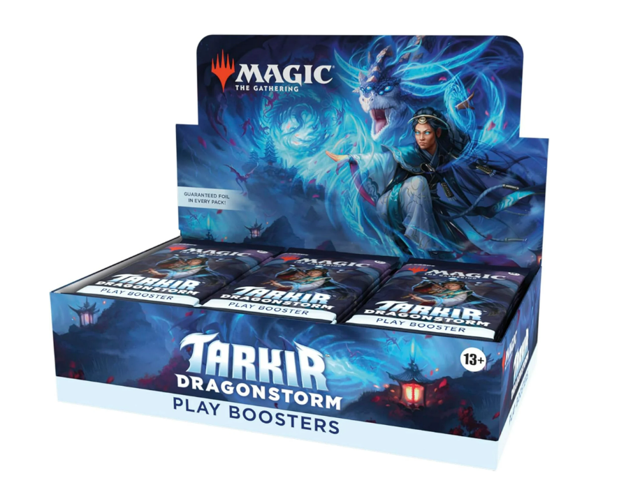 - PLAY BOOSTER BOX CONTENTS—30 Tarkir: Dragonstorm Play Boosters, each containing 14 MTG cards and 1 Token or Art card